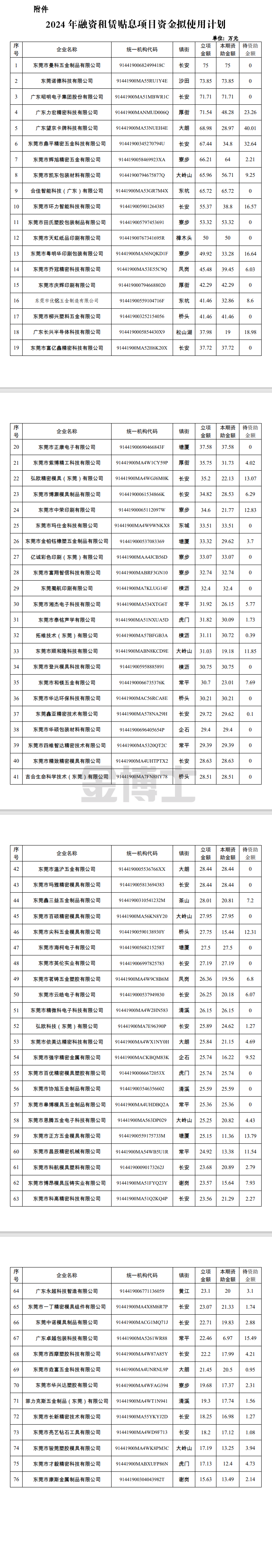 關(guān)于2024年?yáng)|莞市融資租賃貼息項(xiàng)目資金擬使用計(jì)劃的公示